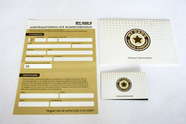 Ontwerp voor een aanvraagformulier, informatieboekje en promotiefolder voor een telefoonprovider