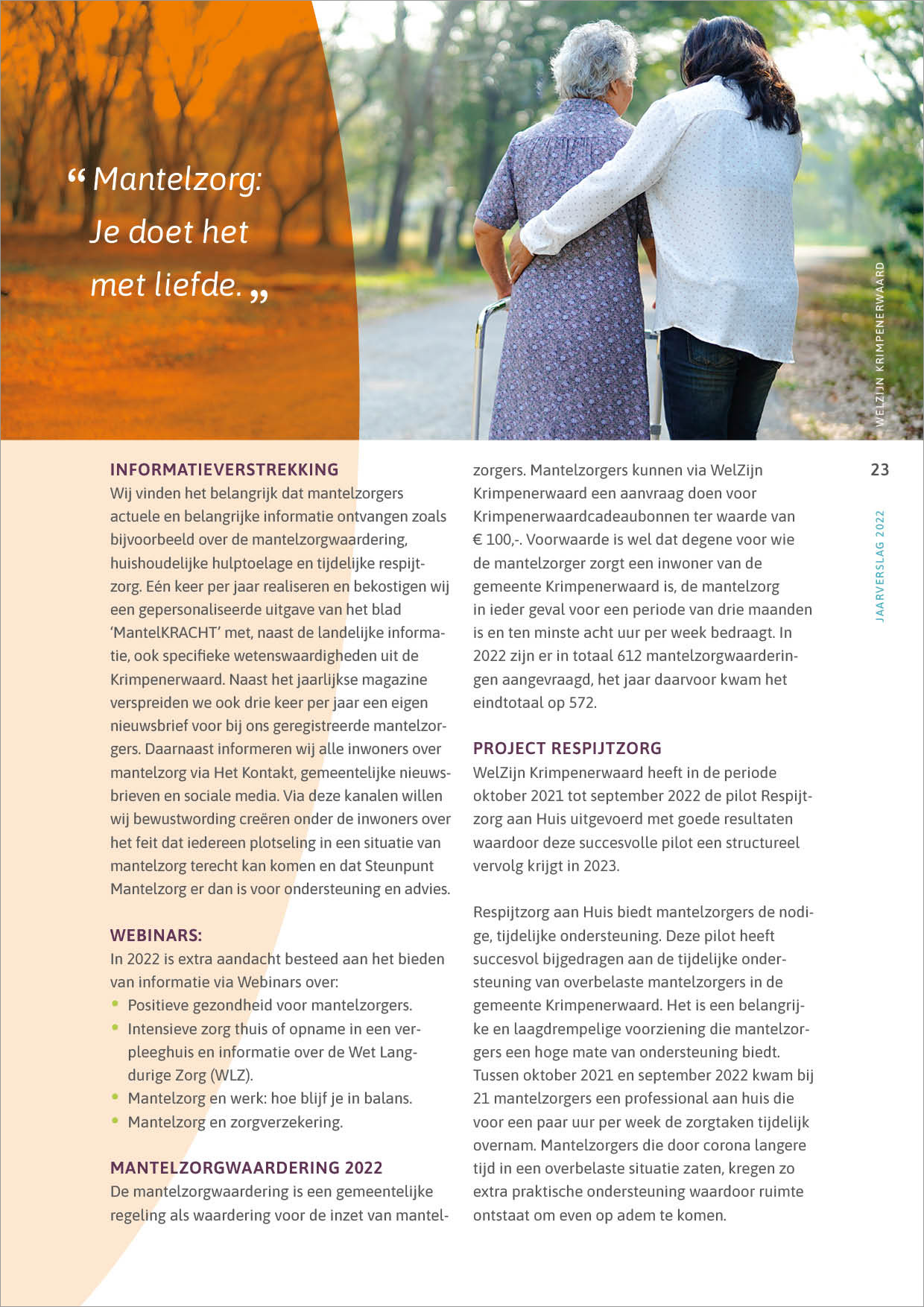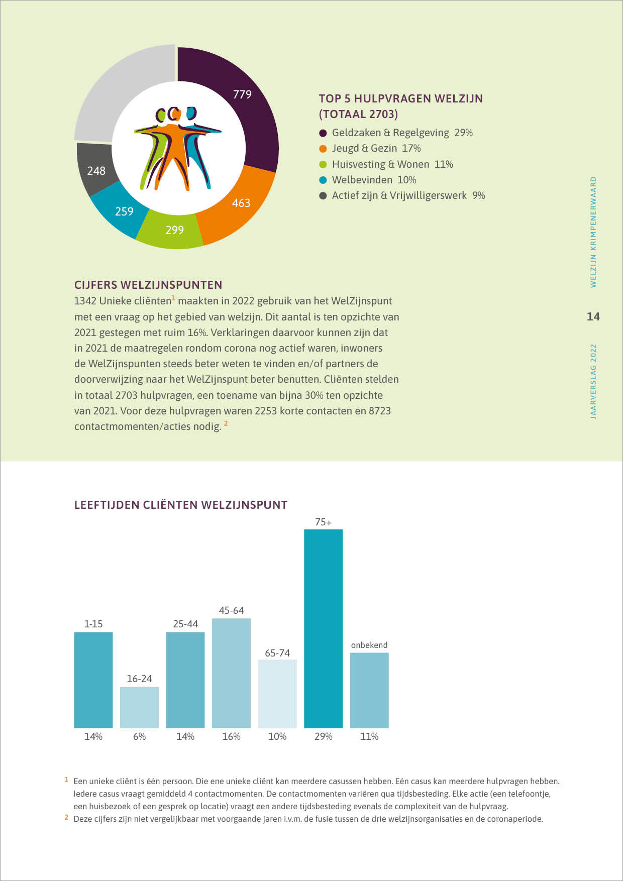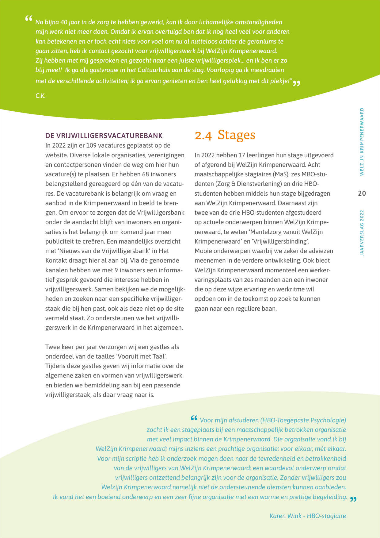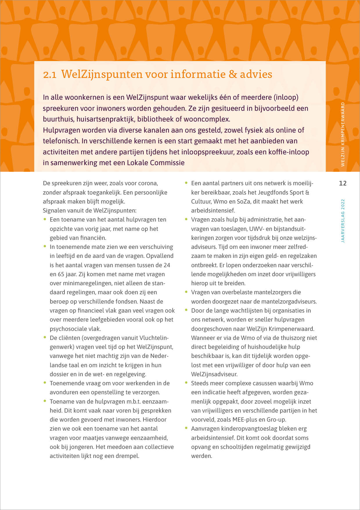 Pagina's uit een jaarverslag om belangstellenden op de hoogte te houden van de voortgang, welzijnswerkzaamheden en doelen c.q. uitdagingen van de organisatie.
